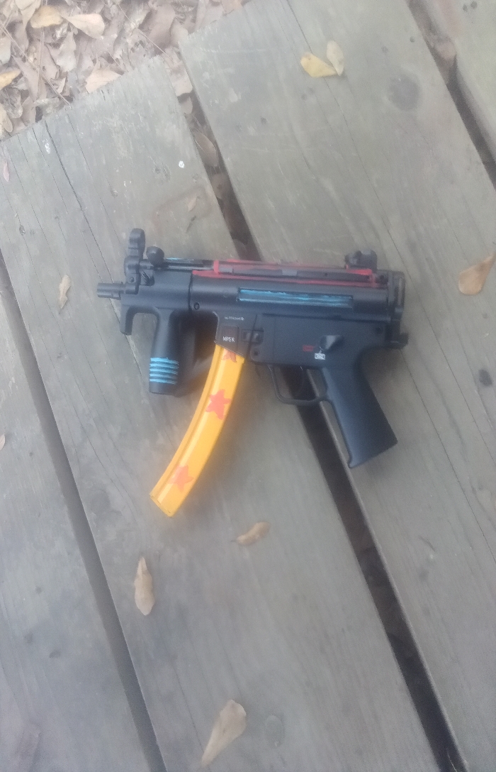 Pretty much what title says, it's never seen actual field play just backyard plinking, hand painted to portray a gun from Batman Returns cool gun to own (this is not a real movie prop) and show off. Shoots fine and very fast. Power plant is CO2.