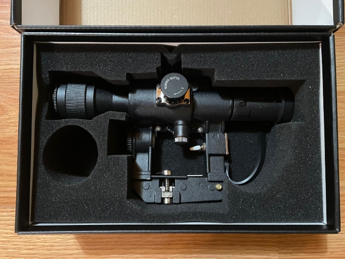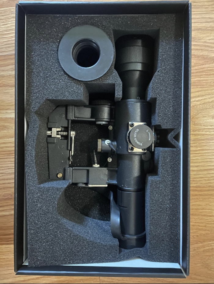 Rail mount is compatible with all rail systems, since it's adjustable to fit rail size. There's an original reticle seen through the scope. Reticle doesn't illuminate, this is the none illuminated version.
