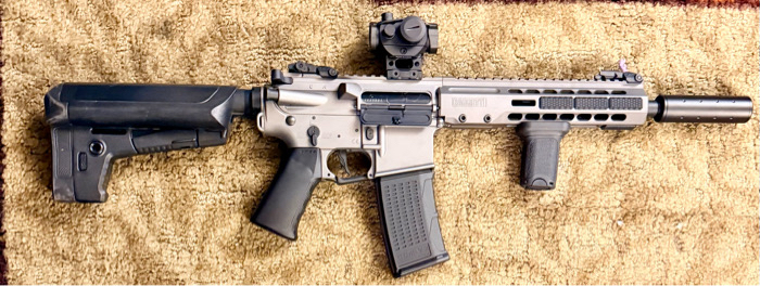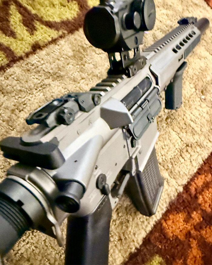 The listing is for the fully upgraded gun without the Red Dot . If you want to add the red dot w purchase it’s only 34.00 . The gun comes with the warrior grip , rail covers & Supressor!! This gun has almost every internal part upgraded. Very crisp trigger pull with an extremely accurate TBB that is hopped to perfection. This gun will shoot .28-.32 weight BBs ideally 👌🏽