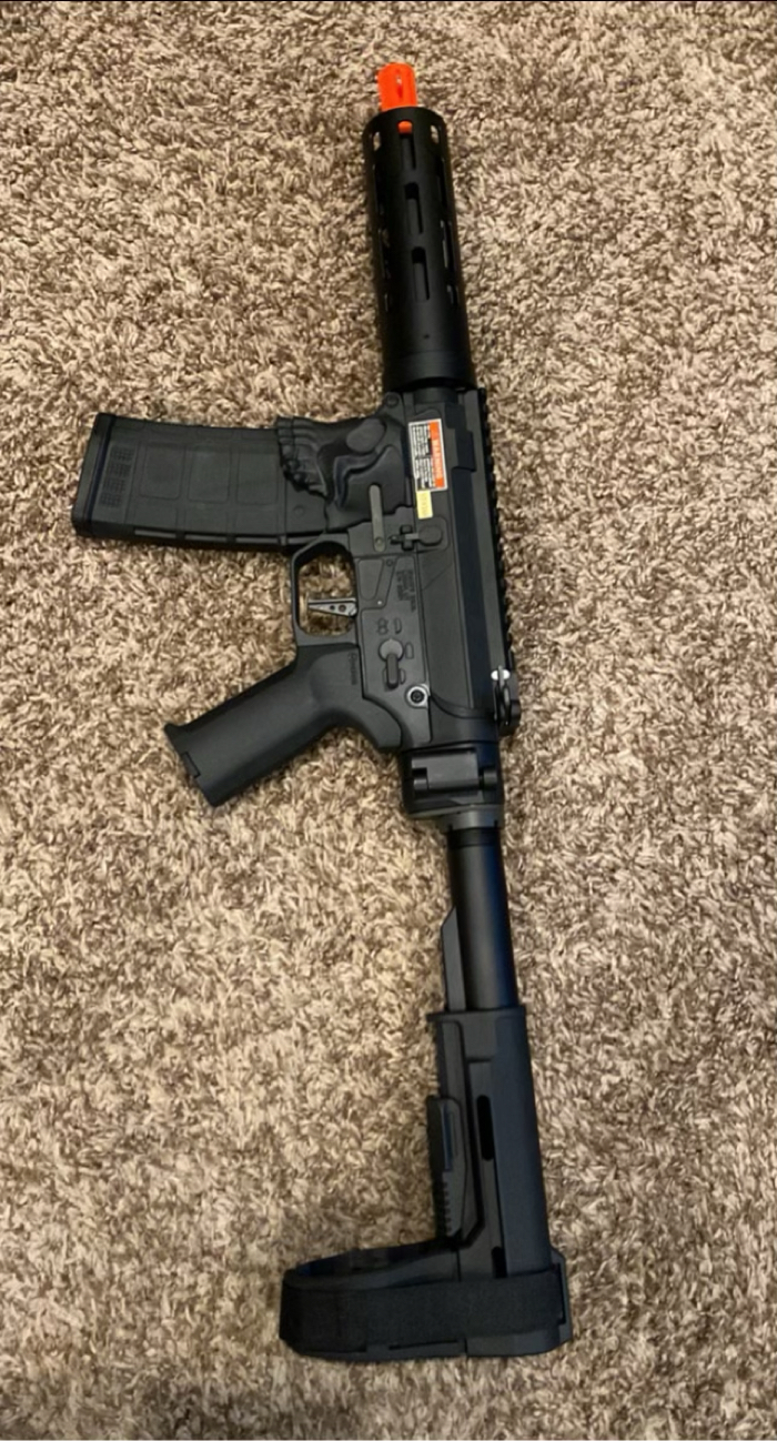 Features Ultra Lightweight Sharps Bros Jack licensed polymer upper & lower receiver set Receiver features flared magwell, oversized integral trigger guard, enlarged magazine release, and flat match-style trigger CNC-machined quick release aluminum barrel and handguard assembly Takedown design allows you to rapidly detach your front end, making it easy to either store or swap to a different setup! M-LOK handguard supports standard rail attachments and accessories such as M-LOK foregrips Folding collapsible stock allows for a wide range of adjustment and doubles as storage for your front end when in "takedown" mode! ARES unique built-in Electronic Firing Control System (EFCS - Safe / Semi / 3rd Burst / Full Auto); Gearbox programmable via EFCS programming unit (sold separately); Advanced reinforced LiPo-ready metal gearbox with quick change spring design Features a new one-piece stainless steel cylinder, removing any chances of air leakage Rotary style hop up for ease of adjustment Rubberized slip-resistant pistol grip and adjustable length of pull stock with slip resistant rubber butt pad Removable flip up front & rear iron sights An Exclusive collaboration project between EMG and Sharps Bros. Firearm Design, the Jack Airsoft receiver accurately depicts the fine detail and craftsmanship of the real AR15 firearms receiver. The stunning and fierce details of the Jack really sets this apart from your average rifle and brings a whole new meaning to personal weapons customization. These fully featured rifles are made not only to look and feel amazing, but also to perform right out of the box. Evike Manufacturing Group (EMG) is the R&D division of Evike.com which specializes in high end training and custom weapons. EMG works directly with the real firearm manufacturers to make accurate, high quality replications of their weapons. The Takedown Model doesn't sacrifice any of the details and features you've come to expect from the Jack series of airsoft Rifle! Featuring the award winning QD programmable gearbox as seen on the popular Amoeba series AEG by ARES, high torque motor, adjustable hop-up and superb accuracy. Externally, the Jack features a brand-new Gen 2 Sharps Bros licensed polymer receiver with enlarged magazine well for high speed operations, optic ready upper receiver, flip-up front and rear sights, ergonomic retractable stock and ergonomic motor grip. In addition to all of that, it also features a quick-detach front end and folding stock assembly, making this the ultimate rifle in terms of customizability and ease of storage!