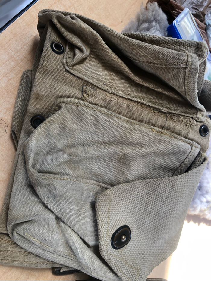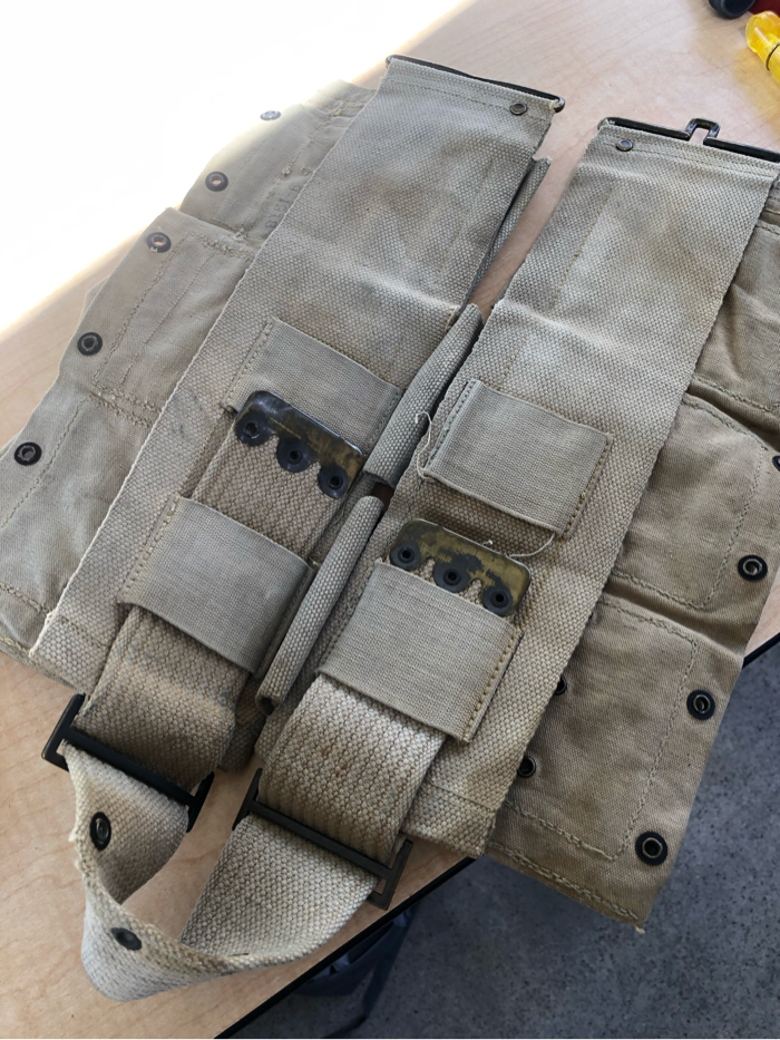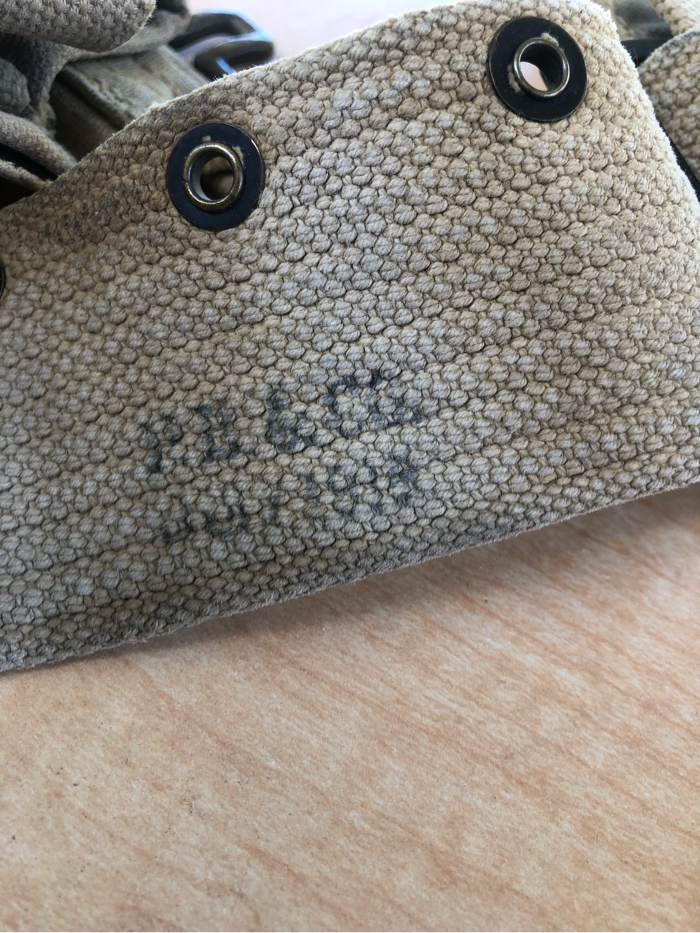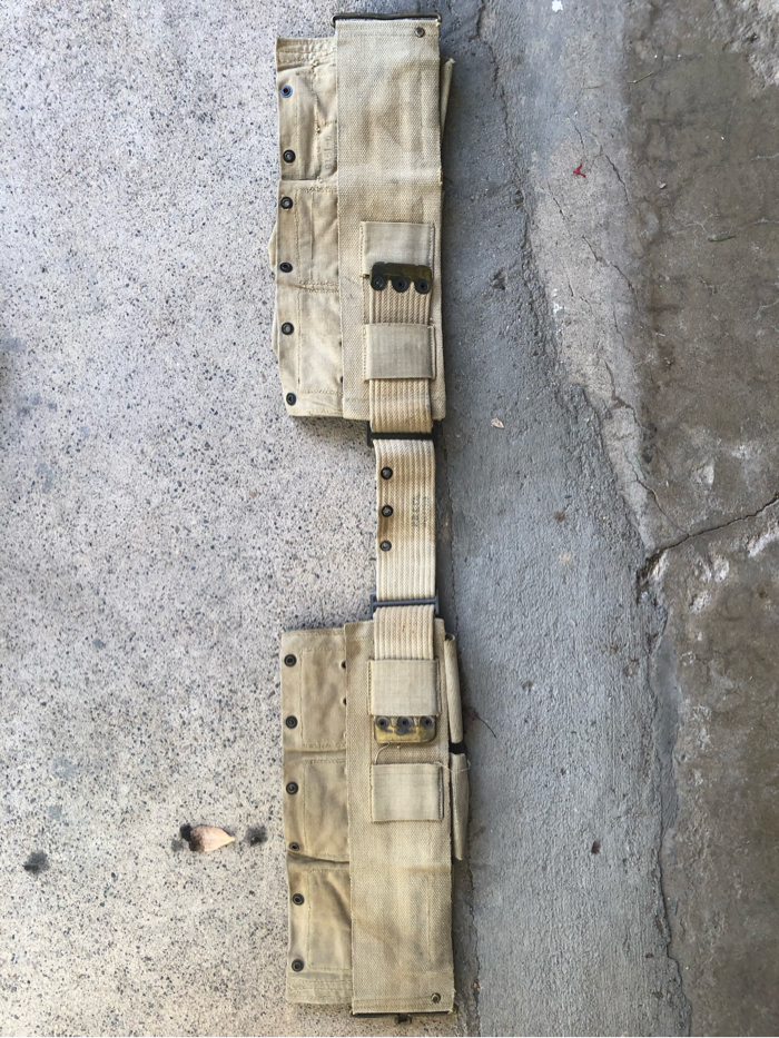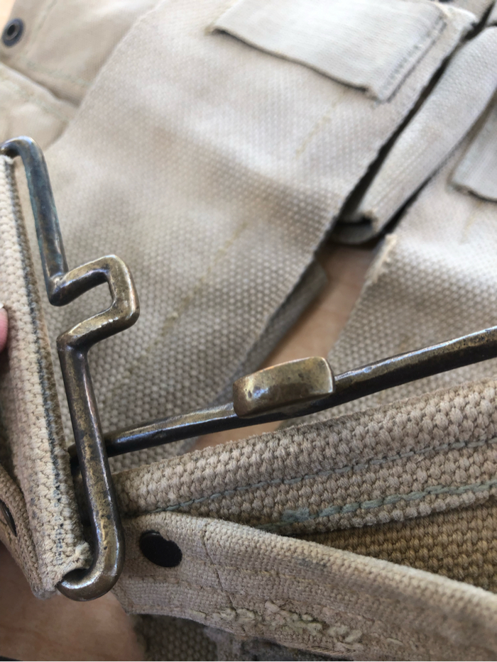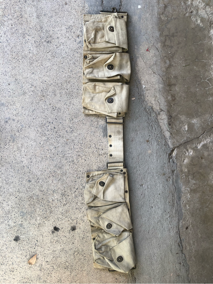 I never put this BAR Magazine Pouch Belt to work. It’s in great condition. Has some liquid staining (maybe from water), but all grommets are clean and in good condition. All buttons have a clean snap to them. Stamped/Dated 1918 (see images).