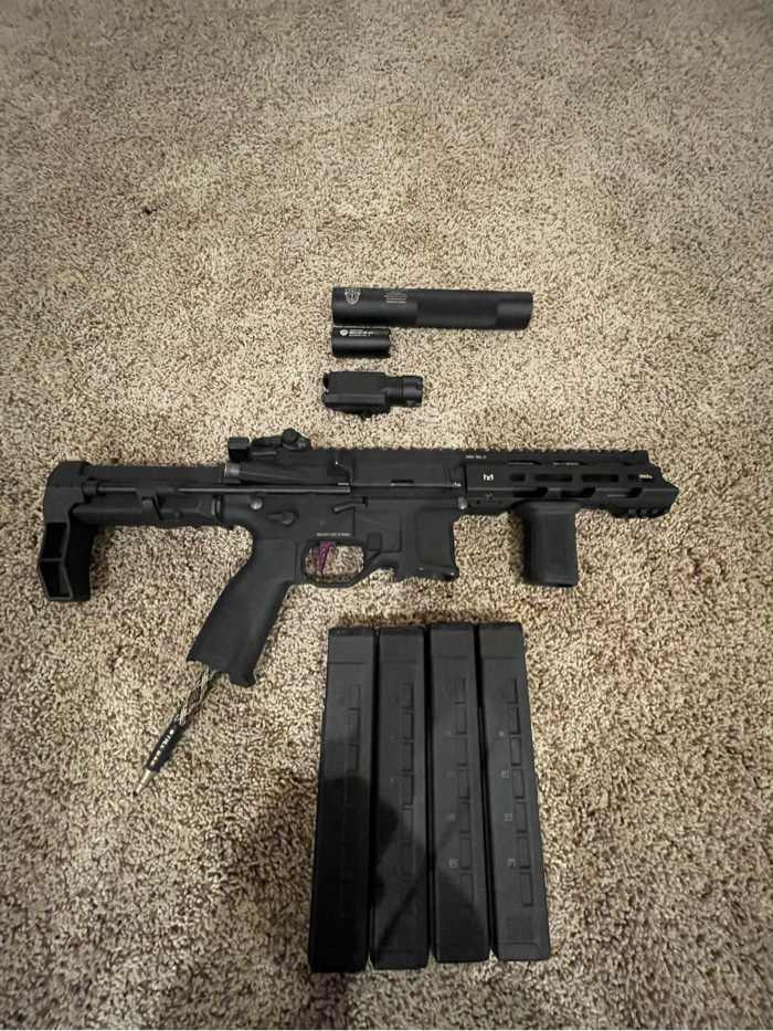 Base gun kwa qrf pistol variant Speed trigger (tunable) 4 80rd mags + auto winding drum Acetech tracer Foam mock suppressor Ambidextrous light