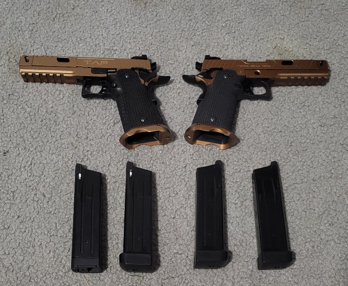 Selling two Echo1 TAP Hi-CAPA Gas Blowback Airsoft Pistols with 3 used magazines