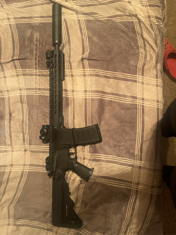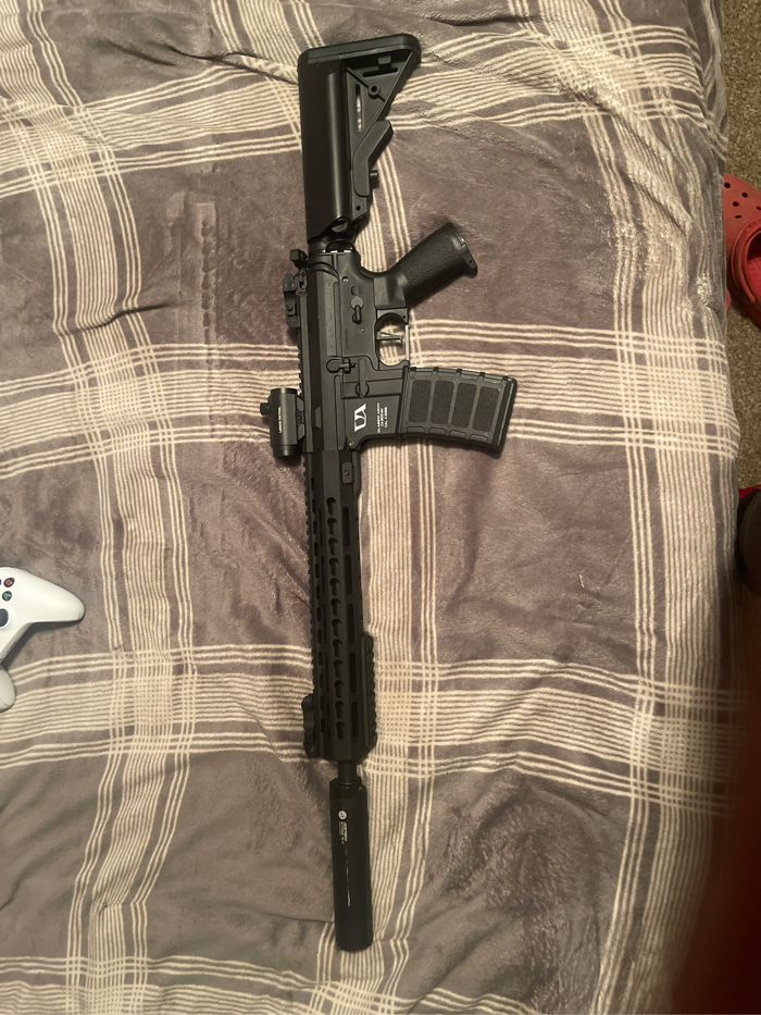 price negotiable just message me!! I bought it without a battery and never had time to buy one, selling with attachments comes with green dot sight and a tracer unit suppressor