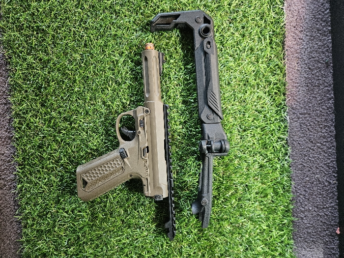 Runs away on full auto. I believe it's because of the hammer sear, which I know is cheap to replace. Comes with stock, but NO MAG. Sorry ):