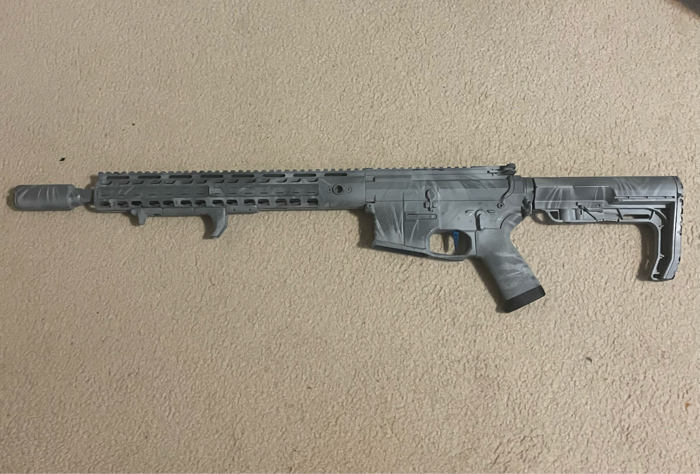 Recently painted with high quality spray paint as well as a clear coat. (Could easily be removed or painted over if you wanted. The base colour is krytacs stock blue colour look it up if you need to)