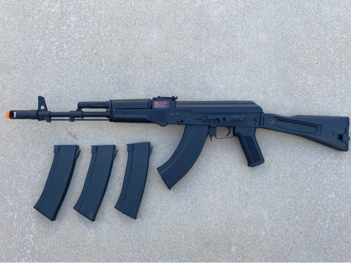 This AK103 model is LTs greatest AK made! This AK has phenomenal performance that’s rare to find in any AK and it fires super quickly on semi. Comes with 4 mid cap mags and a Speedloader and a 1 year warranty card and owners manual. 11.1 small stick battery tamiya connector not included. NO TRADES