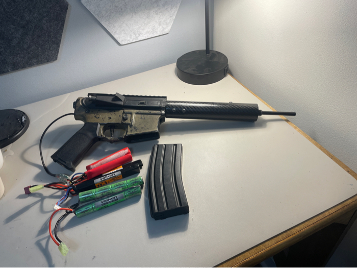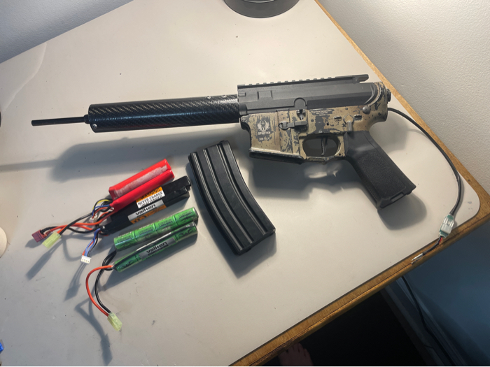 This is a m4 it has a build vfc gearbox,carbon rail and a full metal lower their is a lot more fun things on this gun it needs a tune up but runs good does not have a stock.
