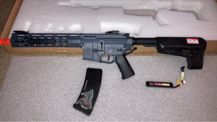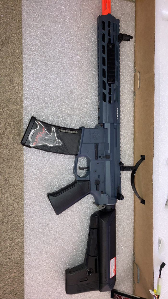Brand new electric AR battery included, the stock is adjustable, I have one mag a red dot sight, 2 rails one is 5 inches the other is 3, I have a front and back iron sight and the barrel rod, just never had the time to use it sadly. If you’re in or around Rockford I can bring it to you 🤝