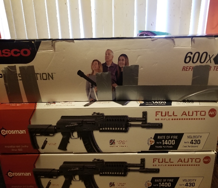 The Crosman AK1 BB air rifle maximizes backyard fun!. Featuring full-auto and semi-auto options powered by dual CO2 powerlets, the Crosman AK1 flings BBs at 430 fps and 1400 rounds per minute. This modern take on an all-time classic comes with a 28-round removable magazine and a foldable/adjustable buttstock to give the shooter the ultimate in look and feel. Get ready to experience the fun that only a full auto BB gun can provide!