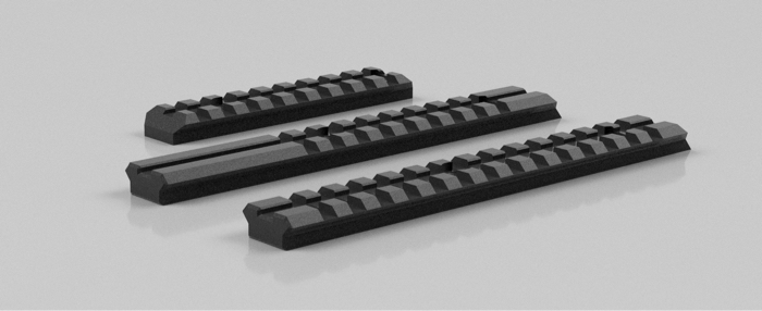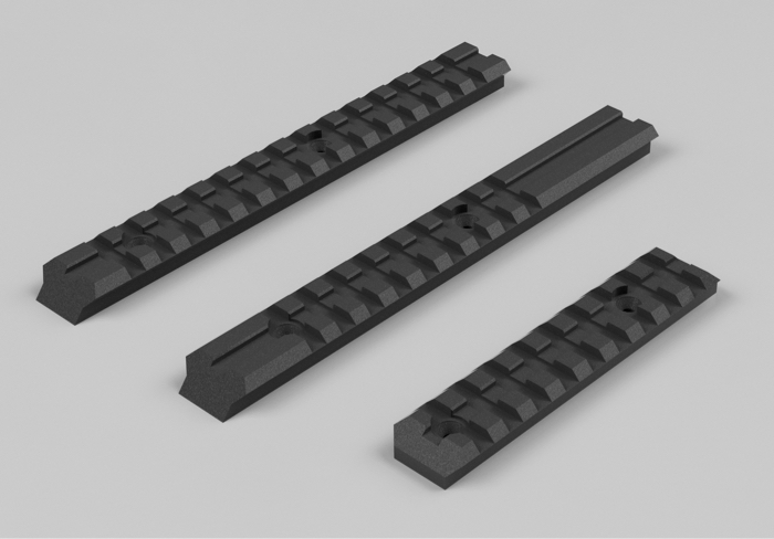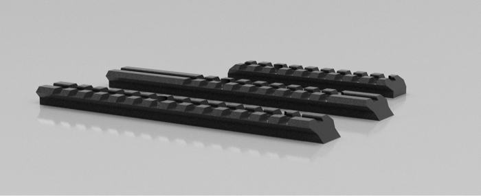 Long (2 versions) - full length Picatinny slots and another version with slots only where the original would be if mounted on top. Fits ONLY on top.