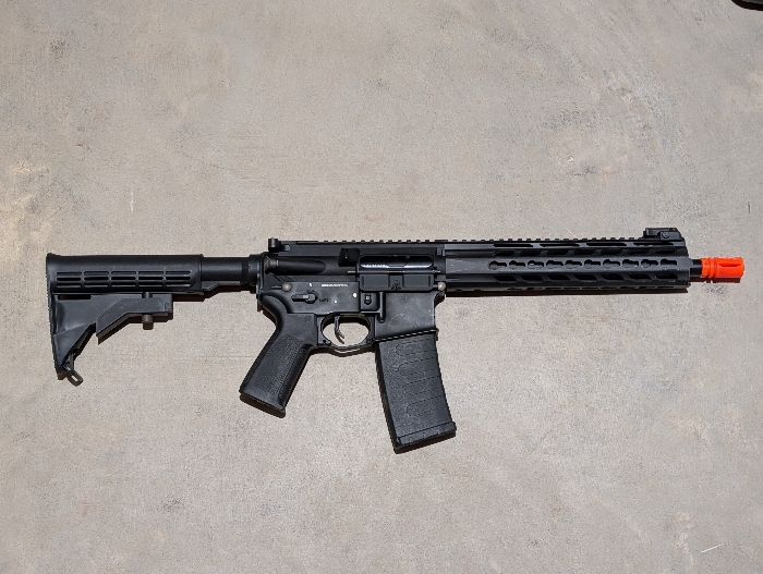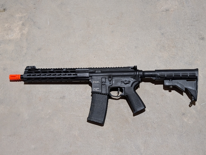 KWA VM4 ronin, in great condition with minimal wear. Has Ambi selector and stop on empty capability with the correct KWA mags. Gun comes with 1 K30/120 mag with extended follower and the stop on empty functionality. Wired to mini Tamiya, I find it I runs best on 11.1 lipos, although it has sat mostly unused, it was used in an event a few months ago but ran great with no issues.