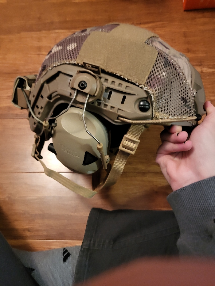 As the title says, it's a bump helmet with peltor range guards and a counterweight for nods. Good condition and upgraded pads, I'll ship with extra pads too. Size small.