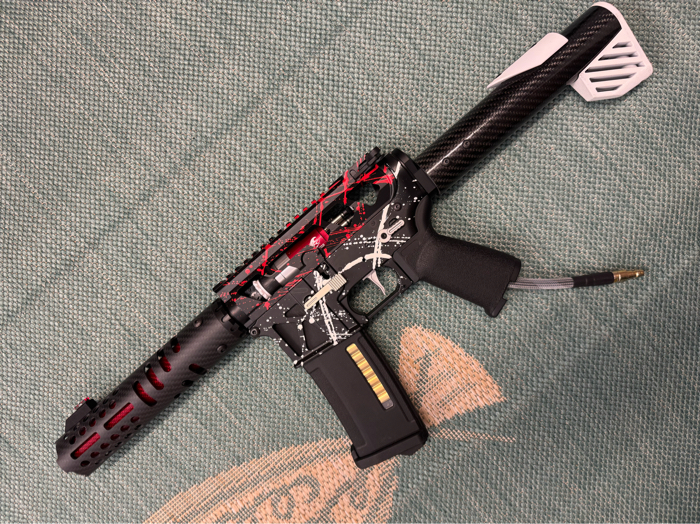 This rifle is equipped with top of the line internals giving you the ultimate advantage over the competition in terms of accuracy, speed, and customizability. With a full CNC aluminum and carbon fiber body its durable, lightweight, and stylish