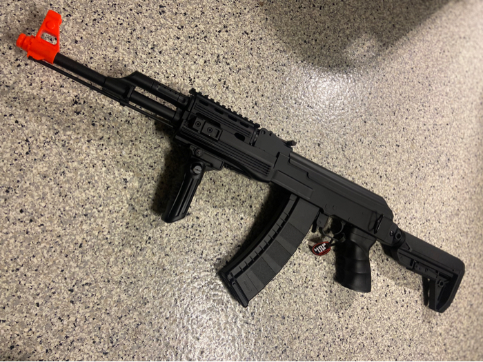 Selling a Pristine condition AK-74 R.I.S. tactical electric rifle. Constructed of high quality polymer and metal furniture, this airsoft rifle looks and feels like the real thing. An incredibly beautiful replica with authentic & quality design.