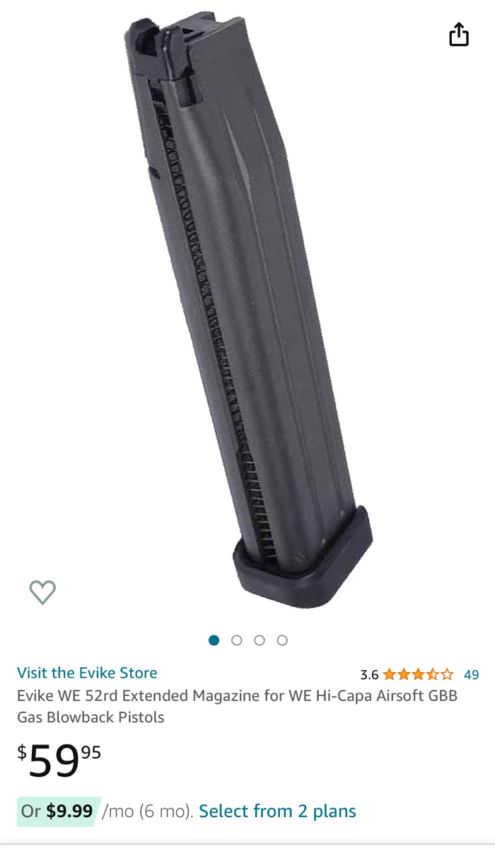 Evike is has the cheaper WE magazines priced at $60. This is only $10 more for a much higher quality mag.