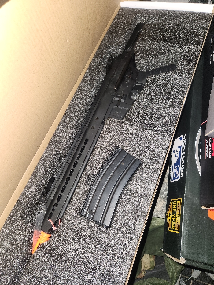 Battery: Lipo stick type battery (Up to 11.1v) recommended (Battery not included. Wired to handguard with standard Deans connector)