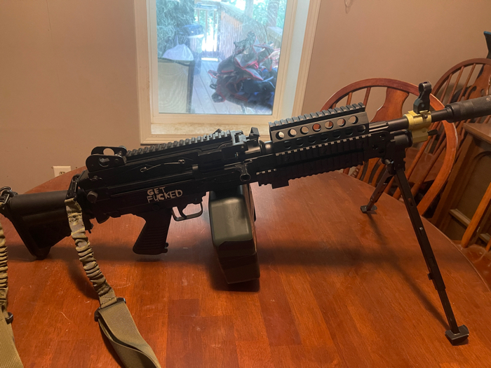 [IF YOUR NOT GONNA BUY DO NOT MESSAGE ME!!]This gun has barely been used great condition no problems at all comes with a 2500rd auto winding box magazine, bungee sling, muzzle amplifier, and a bottle of .28’s