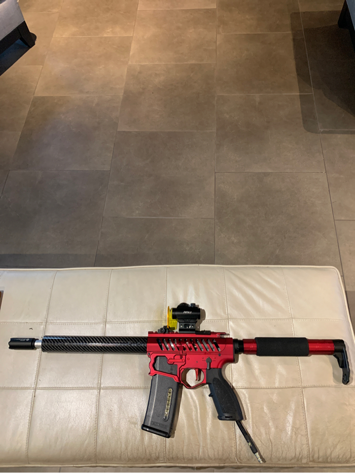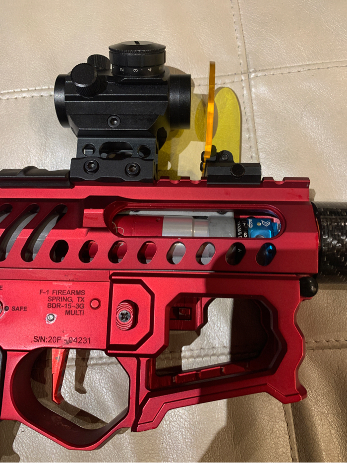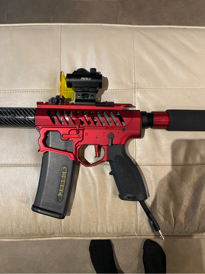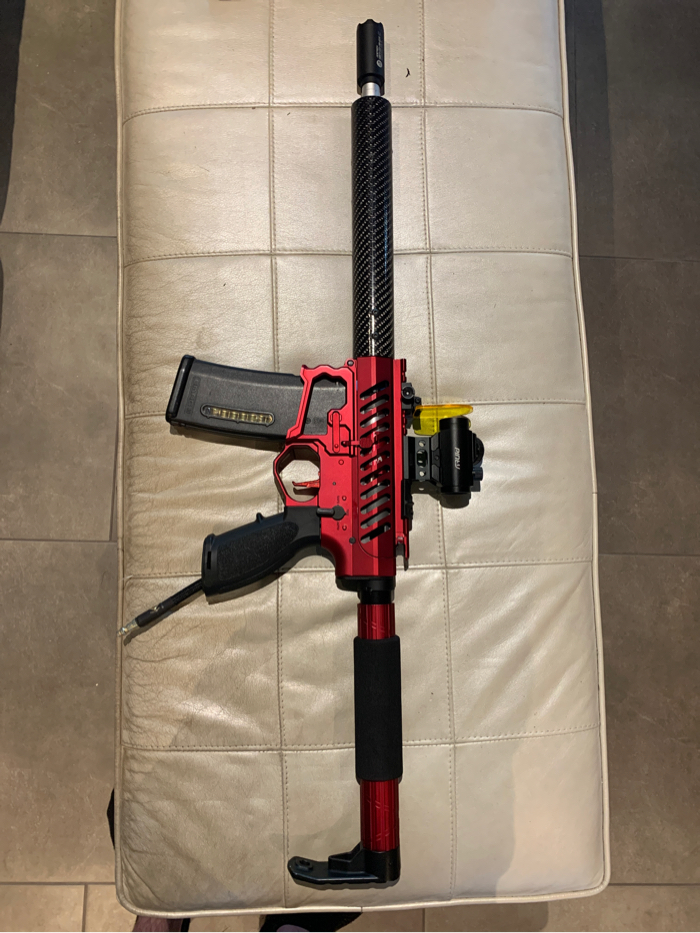 Red Bdr15 with a carbon fiber handguard and polarstar f2. Comes with grip, gripline, tracer two Midcap mags and a hicap, maxx trigger, maxx hopup me pro with Prometheus 6.03 putter barrel, Redot and protector, mini battery, and red hose plus gun case and barrel cover. Can include original hand guard if the carbon fiber one doesn’t float your boat for 30$. Shoot me your offers NO TRADES.