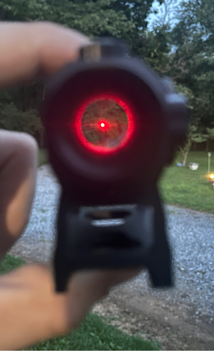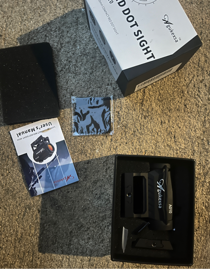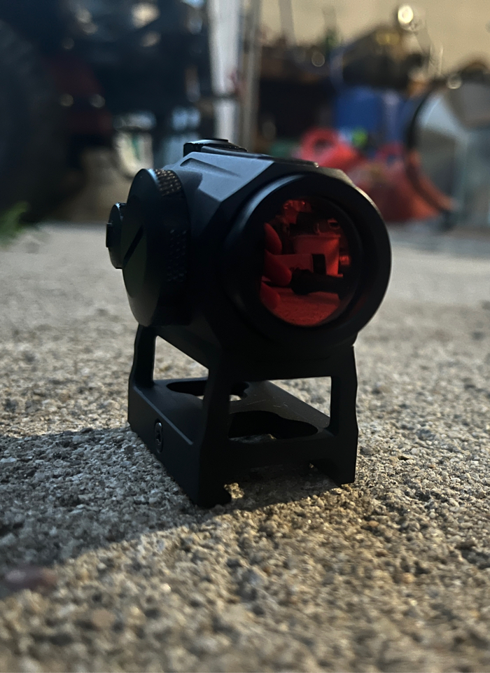 Lightly used T1 red dot. Really enjoy this sight, no wear on it. Included: T1 sight, original box and manual, Allen key, lens cover and extra battery.