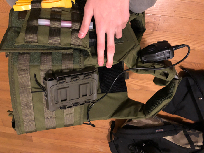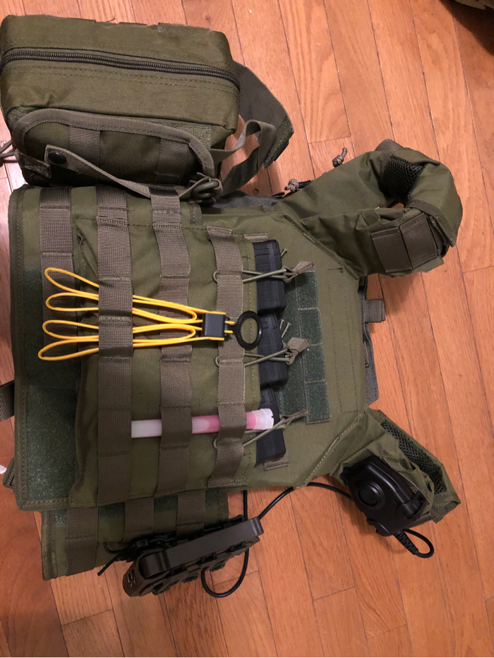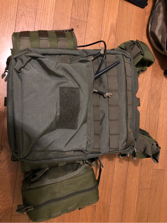 Od green plate carrier setup and helmet. Comes with a ptt, ifak full of medical items, glowsticks, cobra cuffs, backpack, helmet, face covering, and a baofeng radio.(Does not come with m4 mags) The plate carrier was never fielded and was only worn probably like 3 times for about 5 seconds. 200 and you pay shipping.