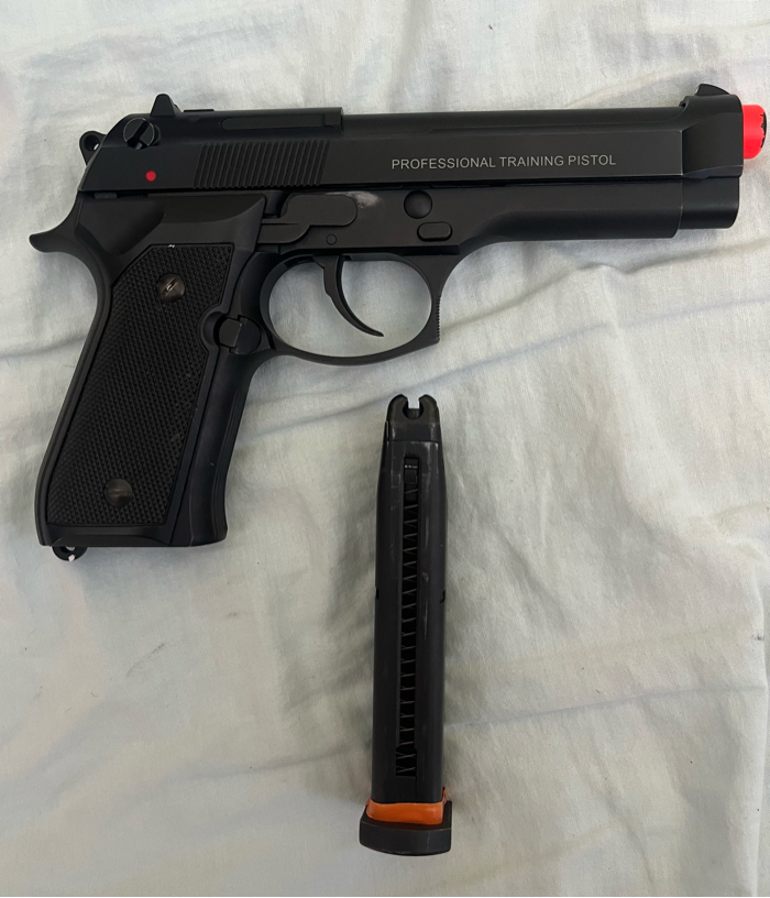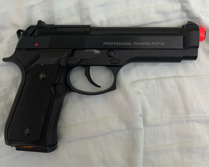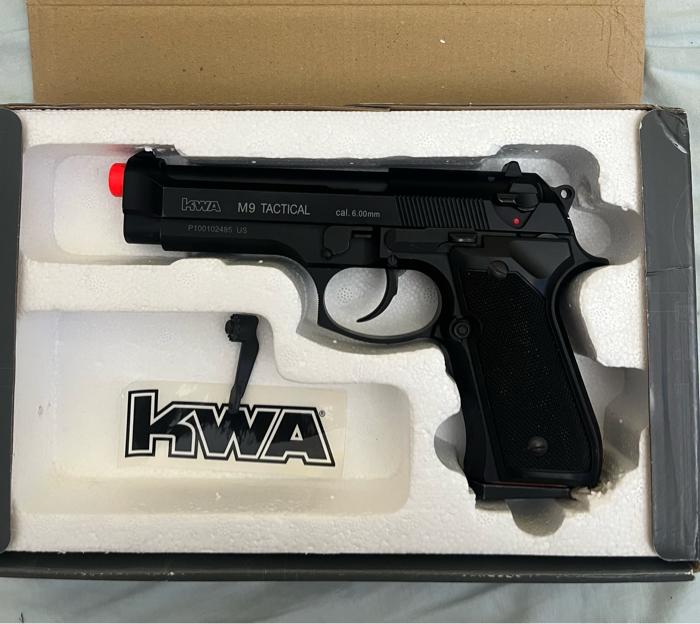 Used kwa M9 training pistol. Comes with original magazine and hop-up tool.