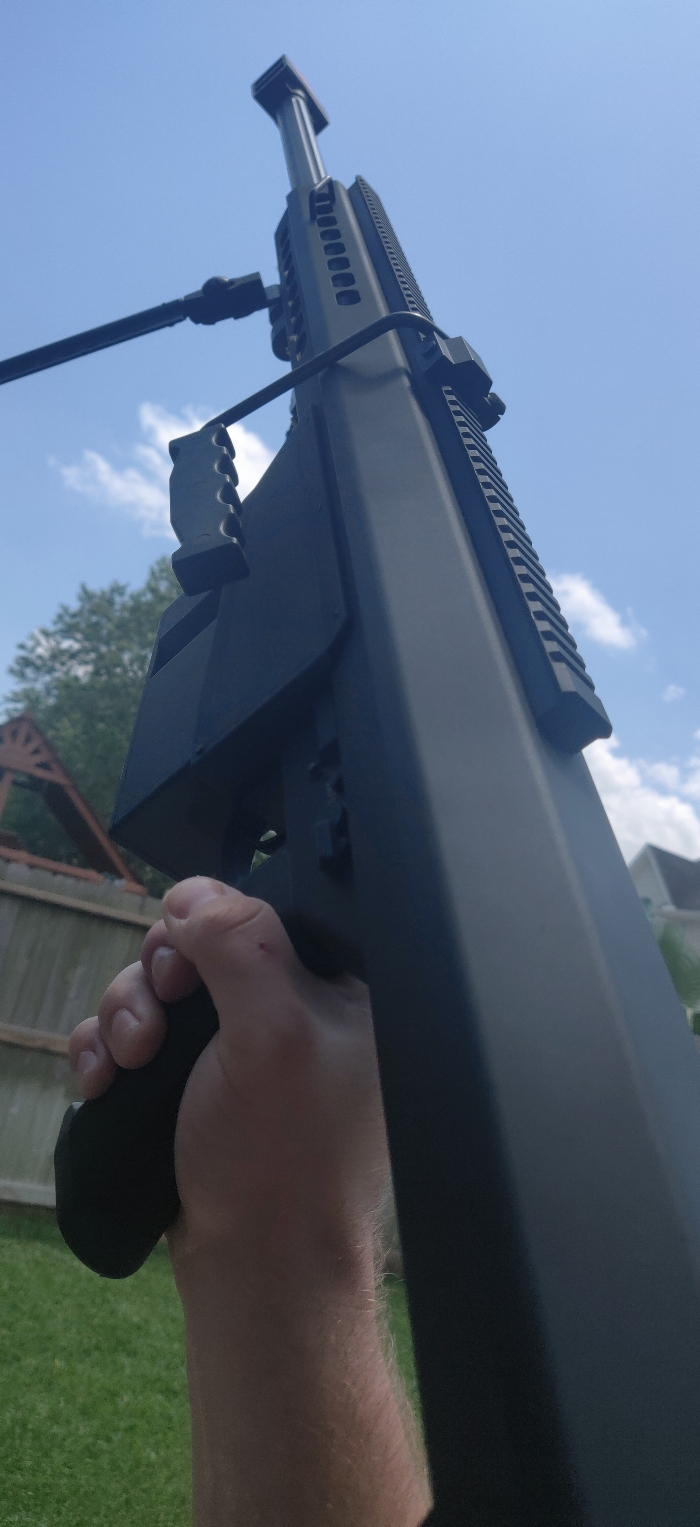 Selling the snow wolf 50 cal, definitely impractical for airsoft but would be pretty nice in either a man cave or in the hands of a cosplayer. I have put a few rounds through it and it does work but if you were actually planning on playing with this then you could probably stand to use a different bucking and a new inner barrel. Not a lot to say here comes in the original box and comes with the mag. Please let me know if you have any questions and shipping will be calculated based upon where you live