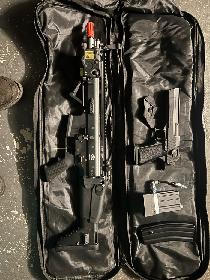 My and my buddies got into Airsoft heavy last year and sadly we ended up not going anymore and I haven’t used this stuff in months. It’s a Gas Blow Back Scar with a HPA adapter mag and a WE-Tech Desert Eagle, Both are so much fun to use and have a lot of personality, looking back on it I’ve used the Scar a total of 4 different times so practically brand new