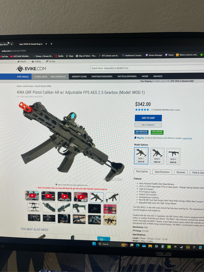 So as the title states , im letting go of this KWA , i have unfortunately lost the interest in airsoft and want to sell my gear to someone who will make better use of it. The pictures you see are the prices of the gun and of what it inside the gun , these prices are on the market. I added them up and decided to sell the gun at 60% i was going to do 70% but the guns DO NOT have batteries so im letting go at 60%. I would highly prefer to sell to someone locally cuz i dnt have the means to ship. I live in Southern California, LA County area.