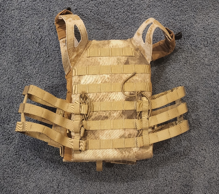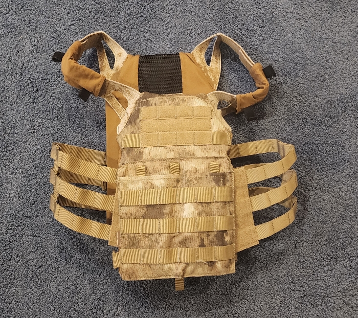 This bundle comes with the adjustable EmersonGear JPC Tan Arid Vest along with two fake insert plastic plates for shaping.