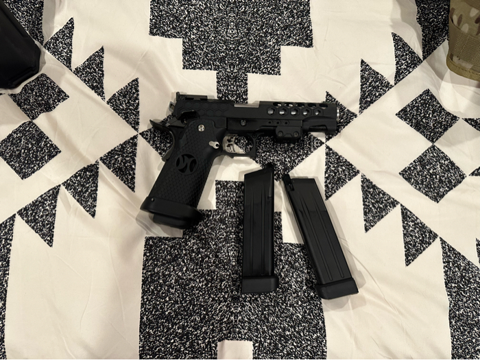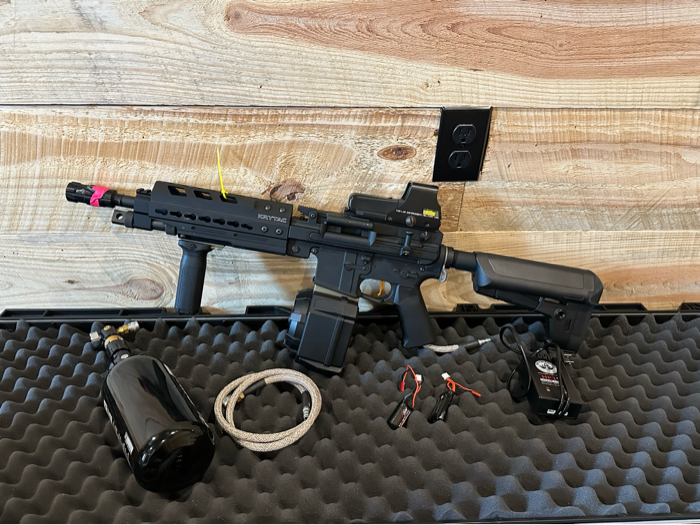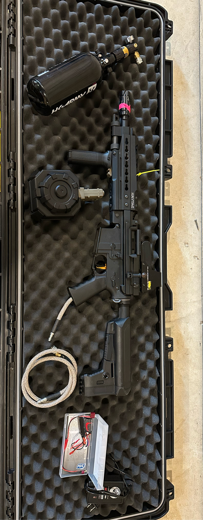 Krytac LMG for sale. Has a polarstar f2 unit, maxx hop, maxx flat trigger, 6.02 stainless inner barrel, braided grip line, mock EO-Tech, and sound amp. Comes with lipo’s and charger for FCU, Angel custom drum mag, multicam plate carrier and a HI-Cappa pistol. Asking $1200 for everything, but open to reasonable offers. Edit: I will be in Fort Worth Texas today, willing to take best cash offer!