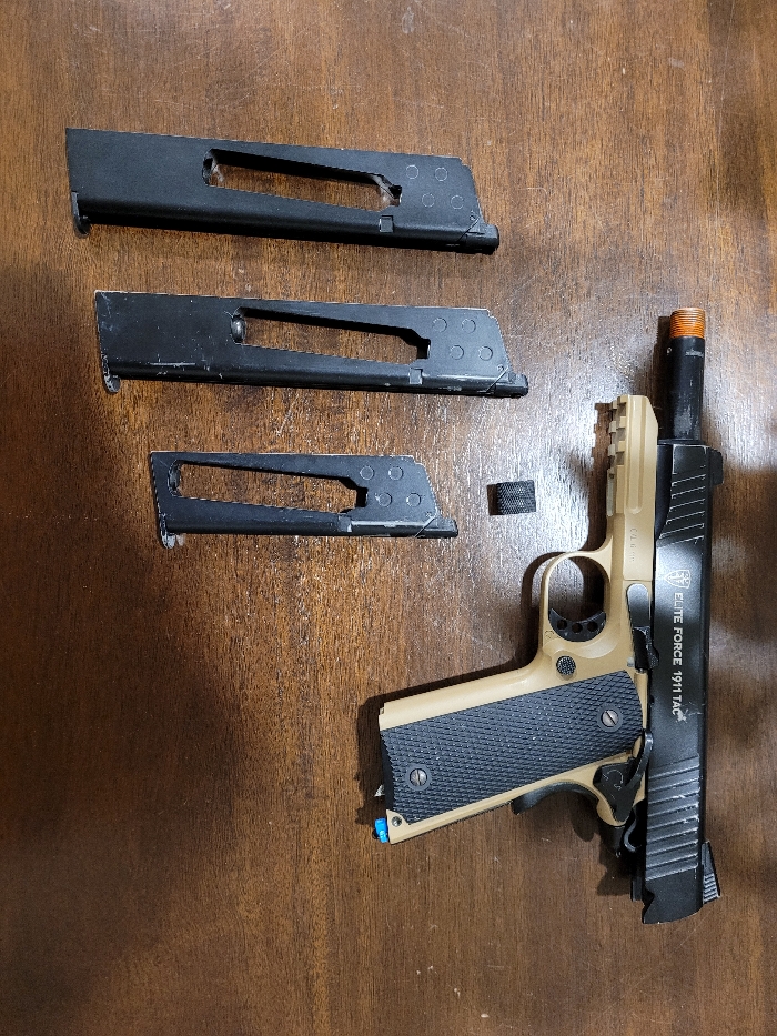 Includes 3 mags 2 extended 1 normal a flash hider has some scratches on the outside of the slide from use.
