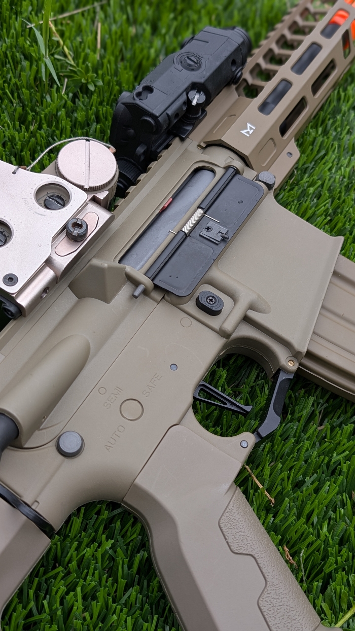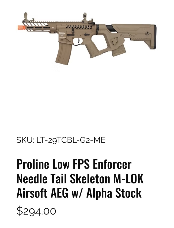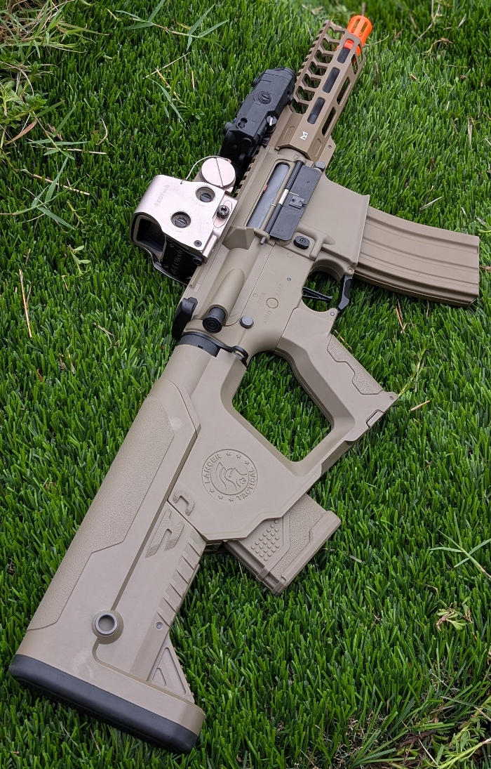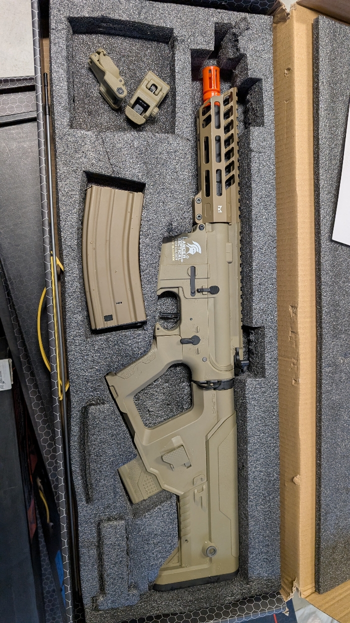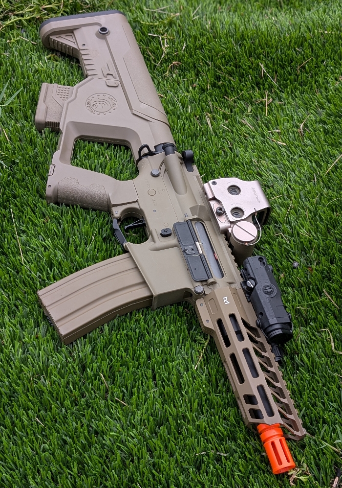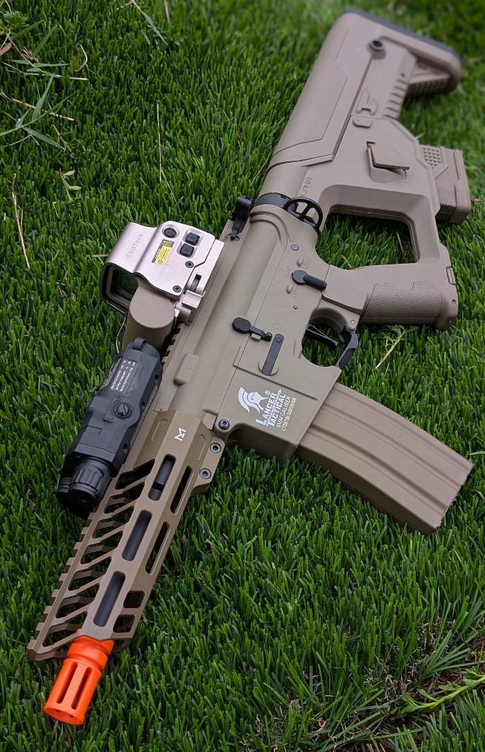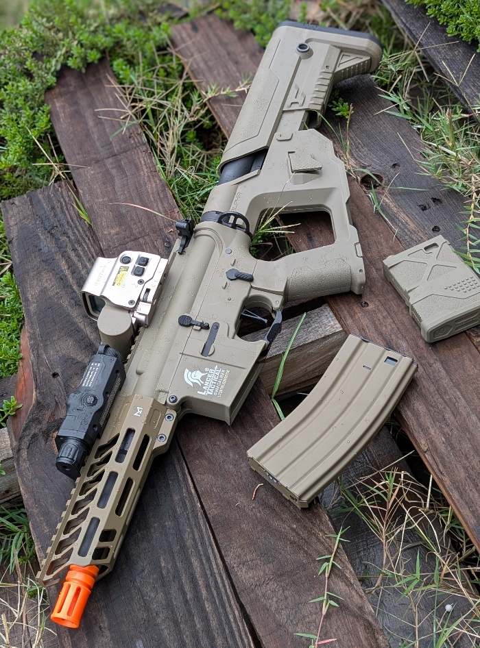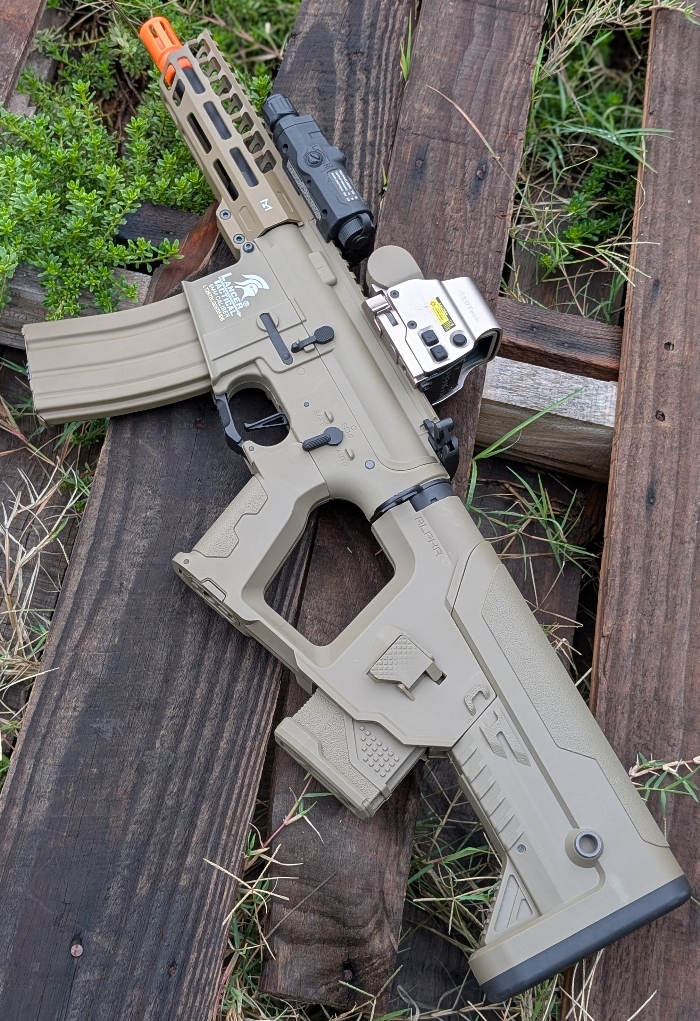 Selling a brand new condition LT Gen2 Hybrid Low FPS Enforcer Needle Tail M4 MLOK in a classic Desert Earth finish with a futuristic Alpha /Hera adjustable Stock!