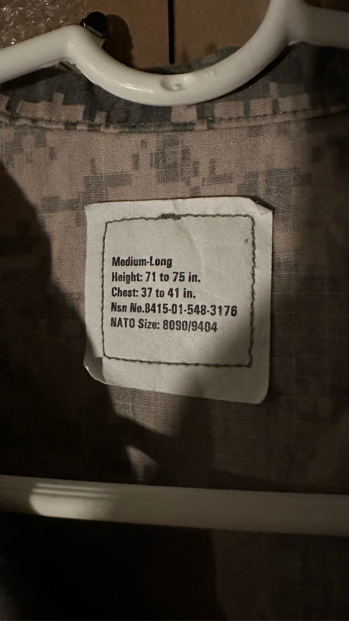USGI ACU Jacket Size medium long, used like new condition. No damage, clean Velcro, clean tags.