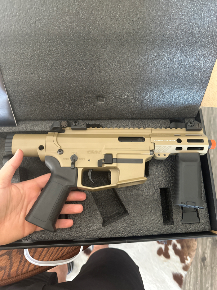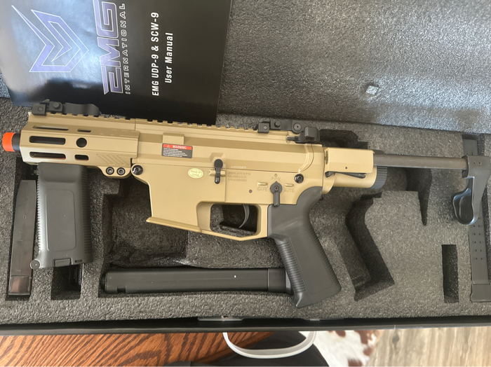Brand new in the box, never fired. Beautiful little fella that I got in a mystery box from evike but never ended up using it. Clean hop up adjustment, fire control, and adjustable stock. Comes with manual, 2x 30 round magazines, speed loader, and the authentication card.