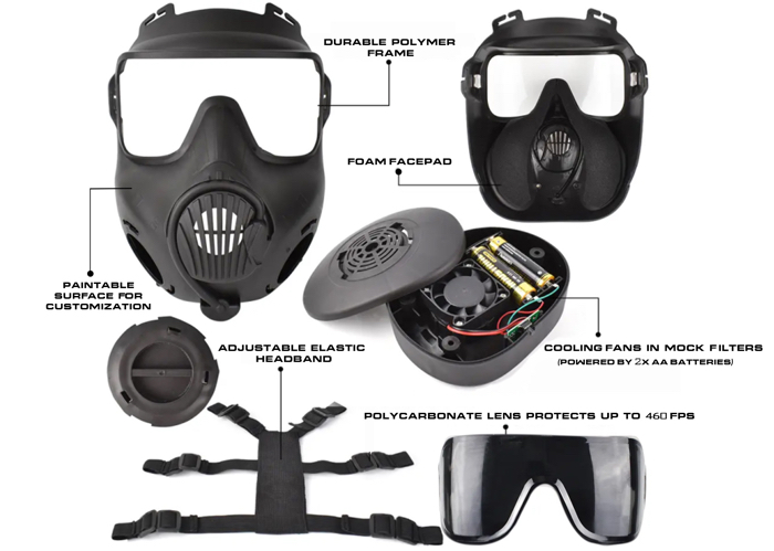 -Mock filters contain fans to keep your face cool and prevent fogging.