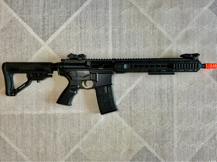 Completely stock and never used in the field. Almost new out of the box. Comes with 1 magazine.