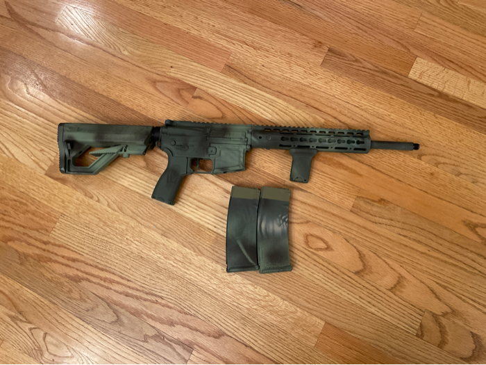 This rifle works like new. It is spray painted. Original price was $370. Comes with 2 mags, 1 spring (its installed, its an m90 which chronos @ ~350). Battery connector can be connected with tamiya and dean. Can add a lipo OR a NiHM charger for $20, or both for $35. DM for trades