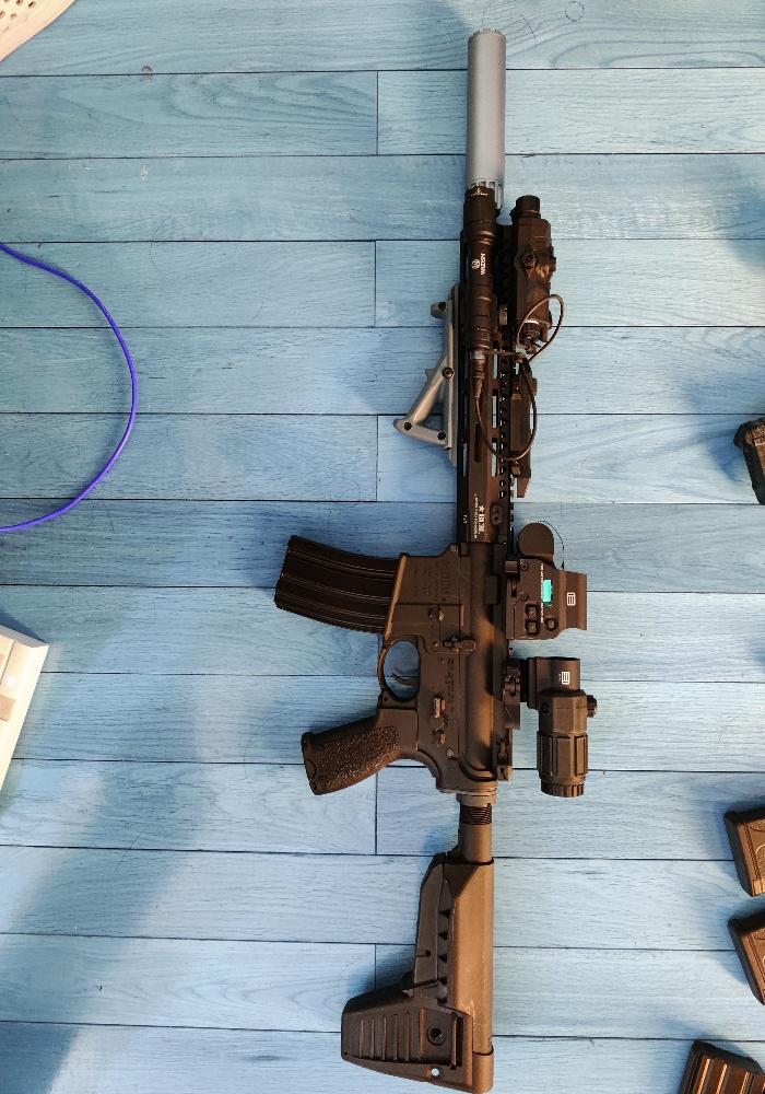 for vfc bcm mcmr aeg set **530$ shipped** this gun needs a little repair(pm for details)the whole package includes vfc bcm mcmr aeg, a peq 15 replica laser box and a flashlight, with 558+g33 replica combo and a unknown silencer. comes with 3 mags.