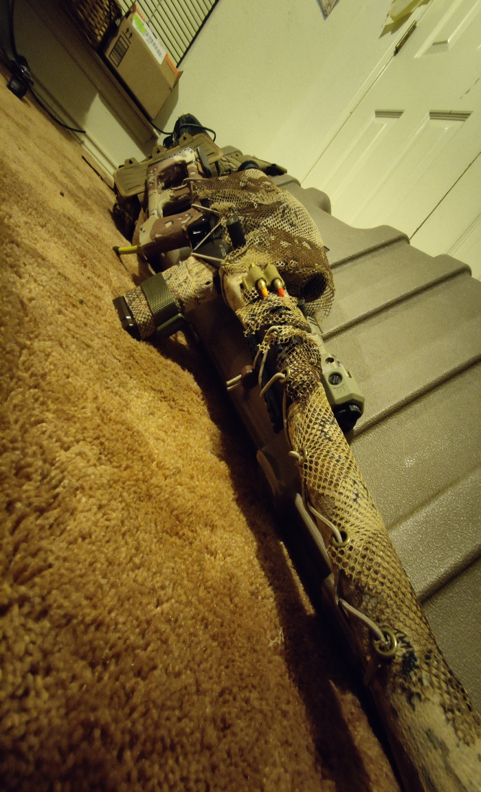 The gun has been upgraded pretty much in every way I could think of. The status can still be used in hpa mode for some basic info via gcs at the moment. I went with a p* f2 to keep the full auto functionality and it doesn't disappoint. The only downside is due to the upgrades, lct mags no longer work and it only feeds well with NPO mags but lct mag compatibility on the npo vss was always spotty at best anyways. The shrouds are custom made with Bungie chord and chord locks so they can be added and removed/adjusted with ease. Under the shroud it's been wrapped in standard desert camo tactical gauze to protect the finish. The stock has been wrapped in cc desert camo kydex high strength canvas wrap giving it a great rugged grip and protecting the authentic wood finish while still being easily removed. The build was made for the environments I play in but if you prefer the standard vss look all of it can be removed by simply taking it off. Underneath the wrap and gauze the finish is near brand new condition other than the black paint to cover the original orange painted end of the integrated suppressor.