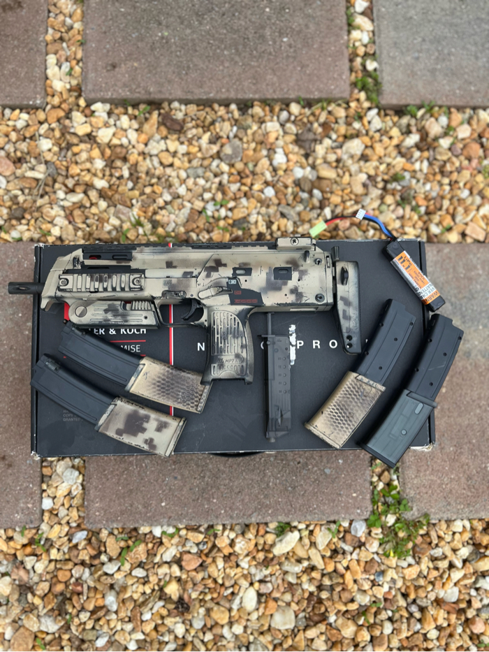 For sale today is a VFC MP7 AEG, included with a bunch of other accessories. I used to play airsoft at my local field a lot, however I am now getting out of it. My MP7 is painted in an AOR1 pattern, along with the magazines. In this package I am including: