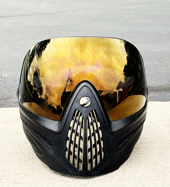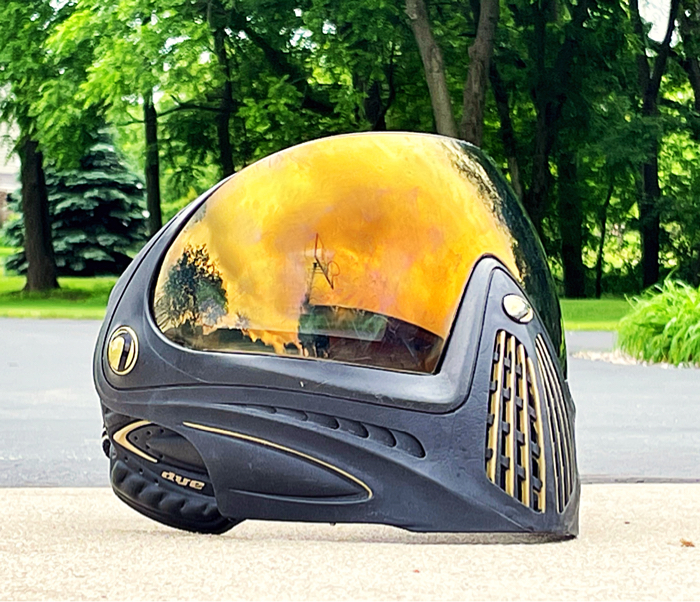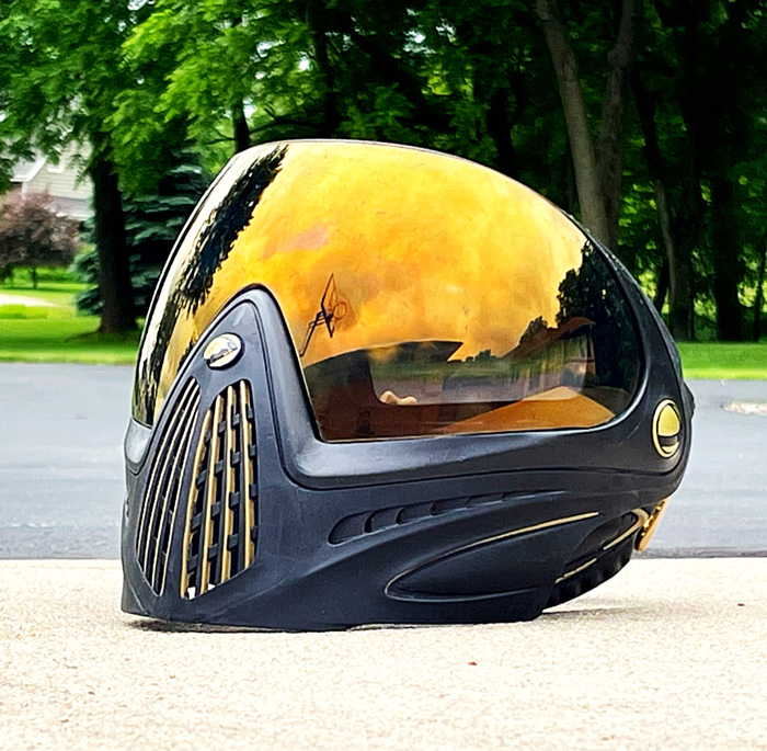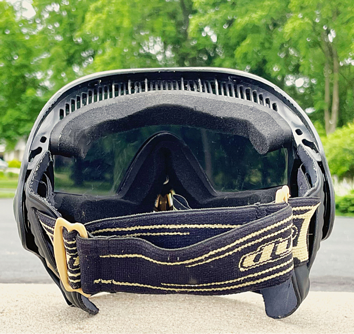 Dye I4 Black/Gold Mask Is Coated With A Protectant Spray Has Some Scratches Lens Have Some Wear And Tear Has Great Foam Very Comfortable