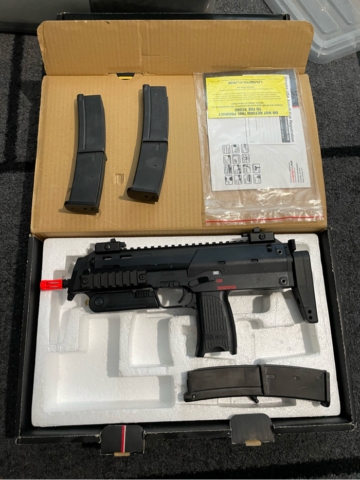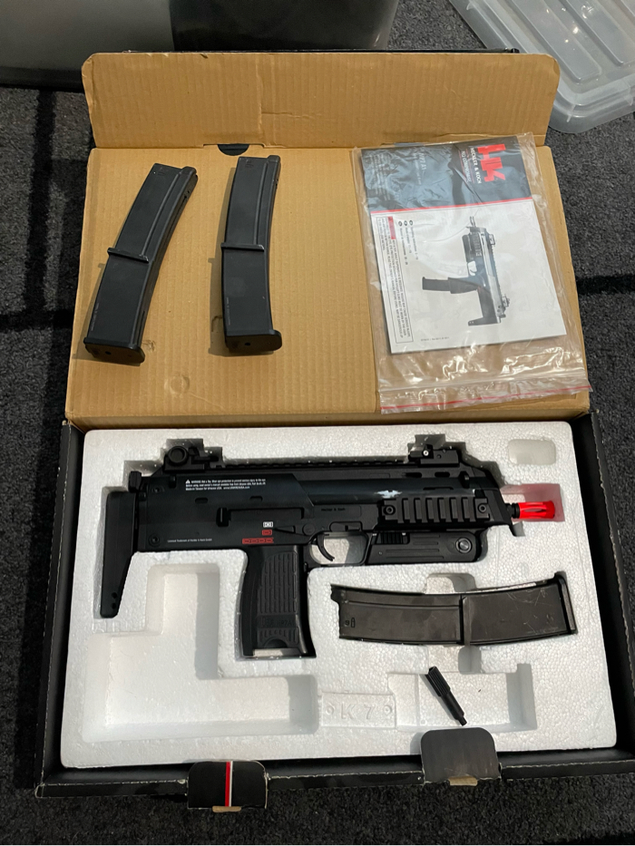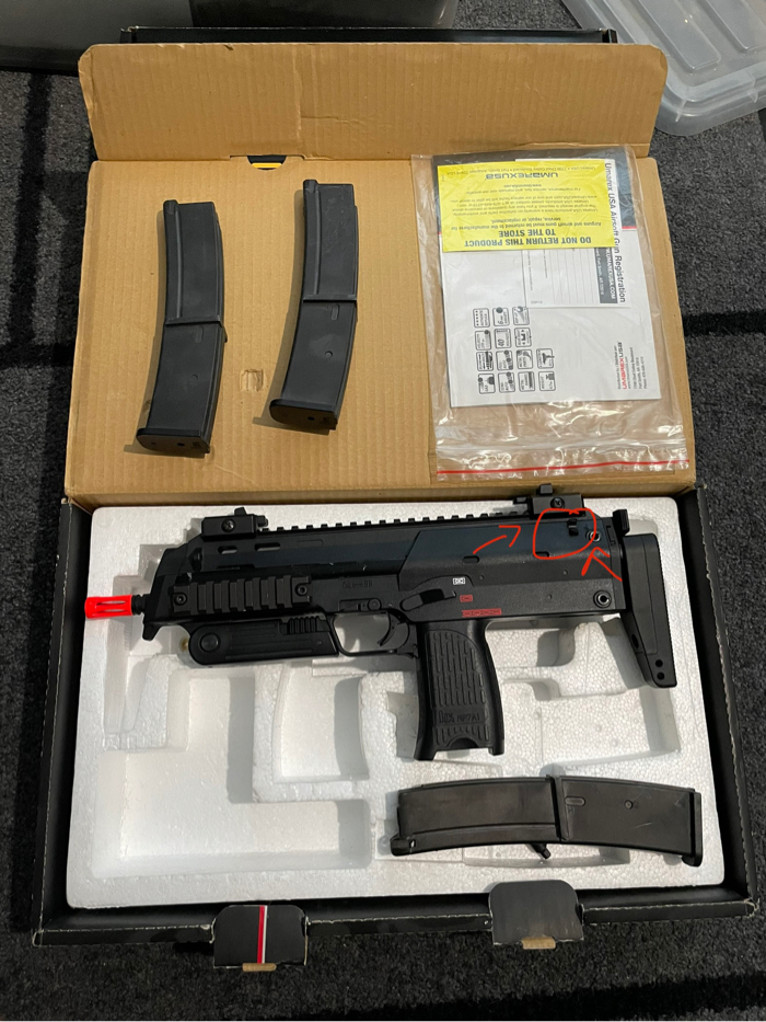 Lightly used hk mp7. Bought this gun several years ago and used it maybe a couple of times. There is a small broken piece seen in the picture with a red circle.