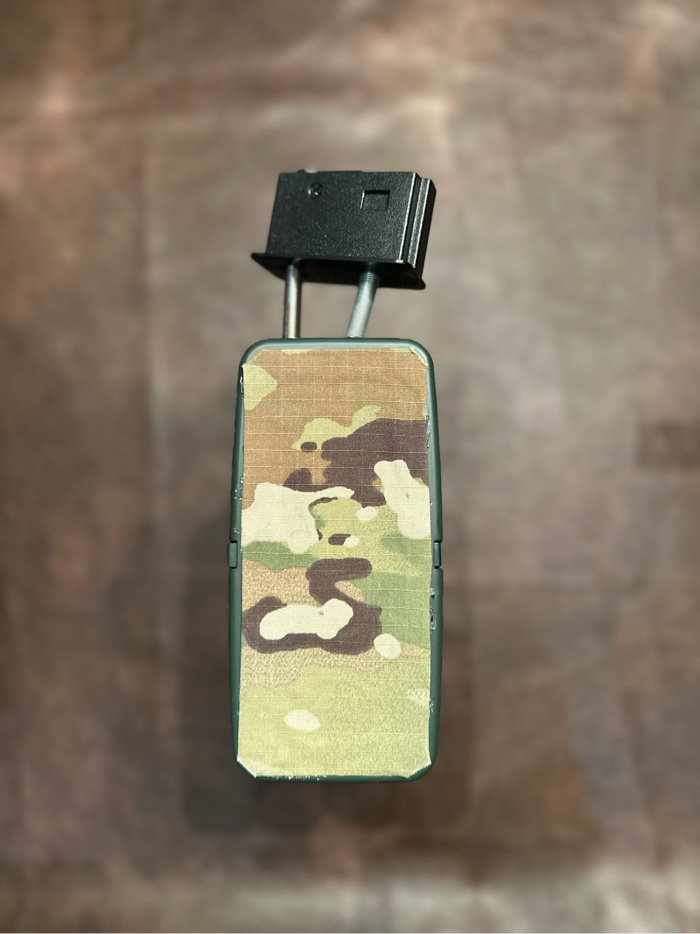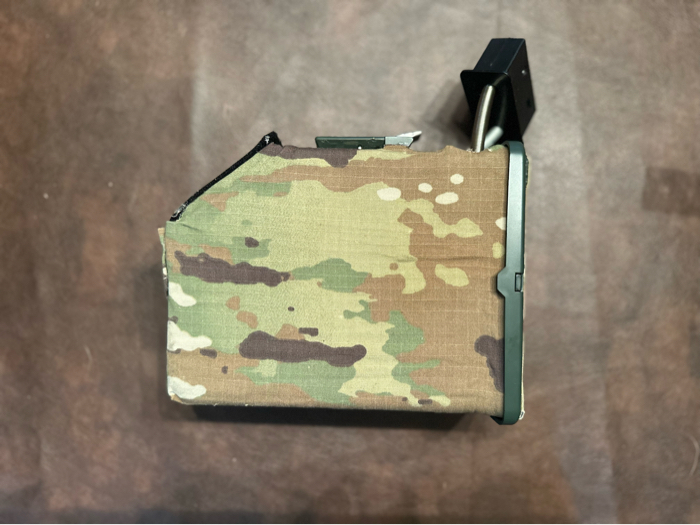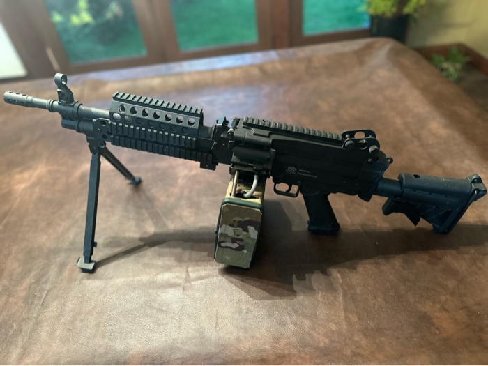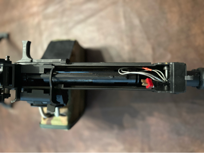 Everything works good on this, wired to deans inside the feed tray. Custom multicam wrapped drum mag with velcro over cut out in the side for faster filling while in the gun. Will come with three small bottles for fast filling on the go. Basically new with little use.