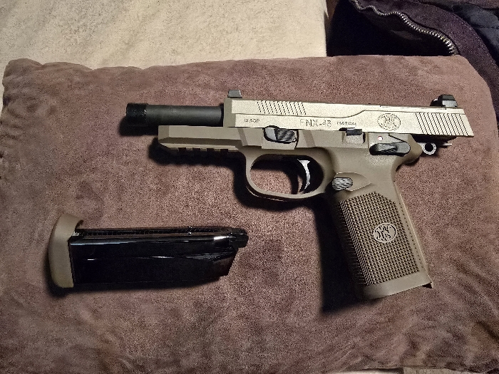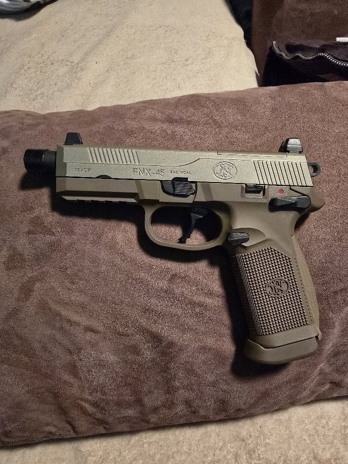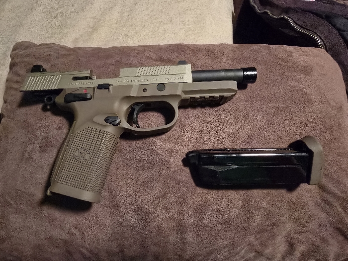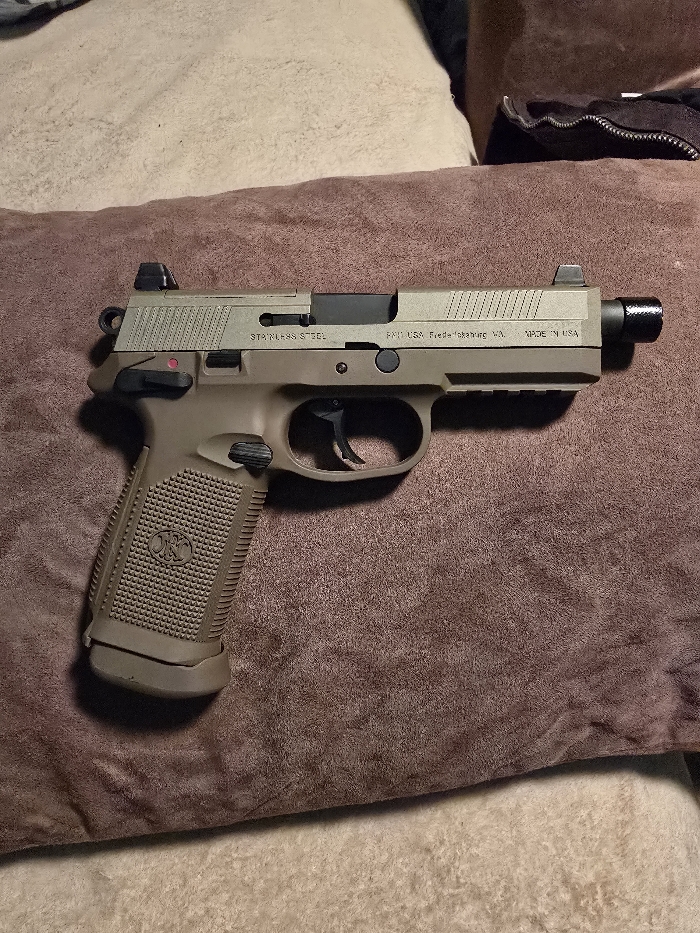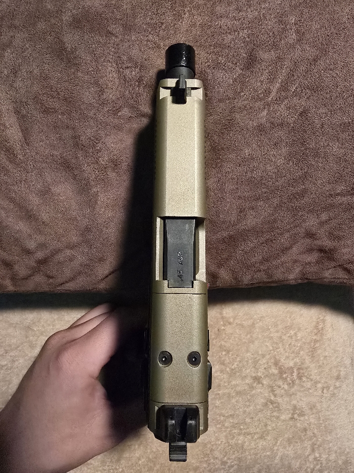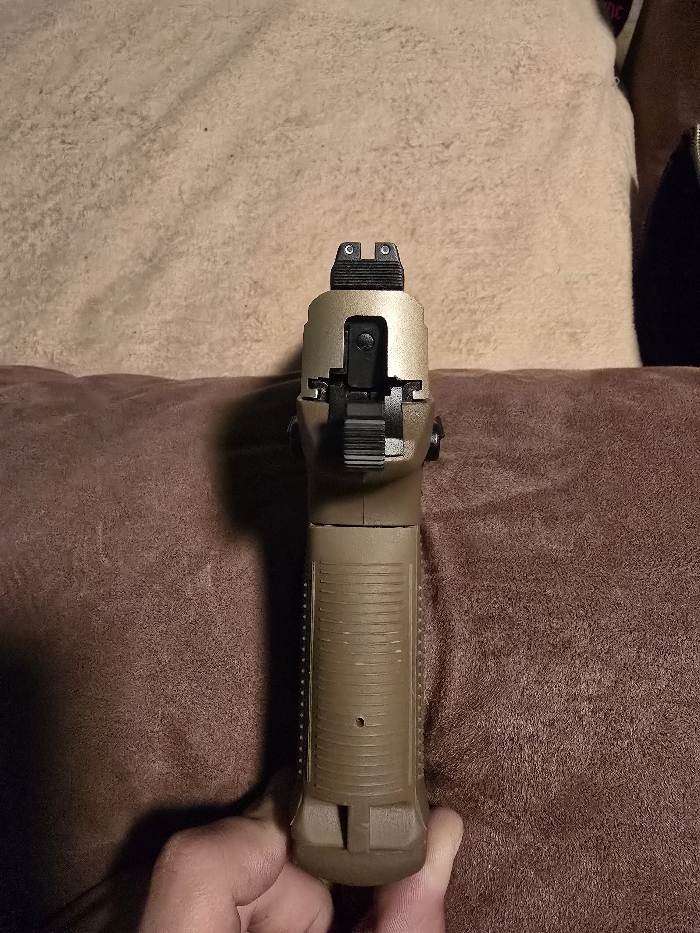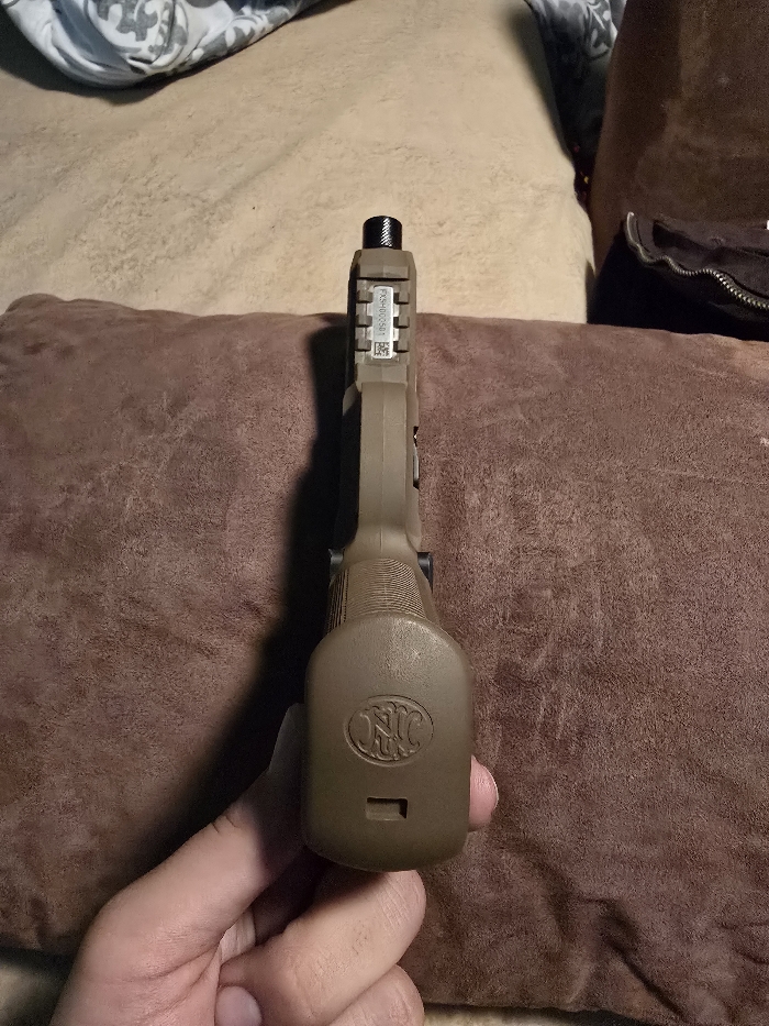 Dark Earth finish. Comes with spare backstrap and a thread protector.