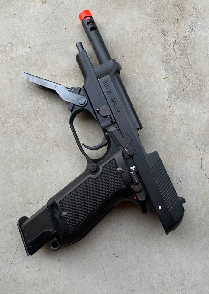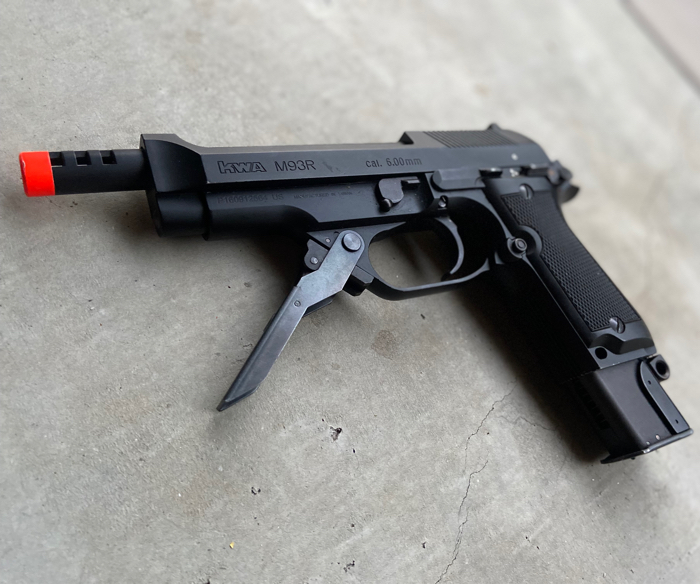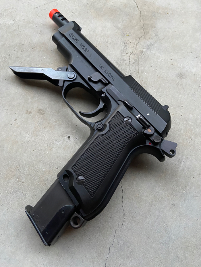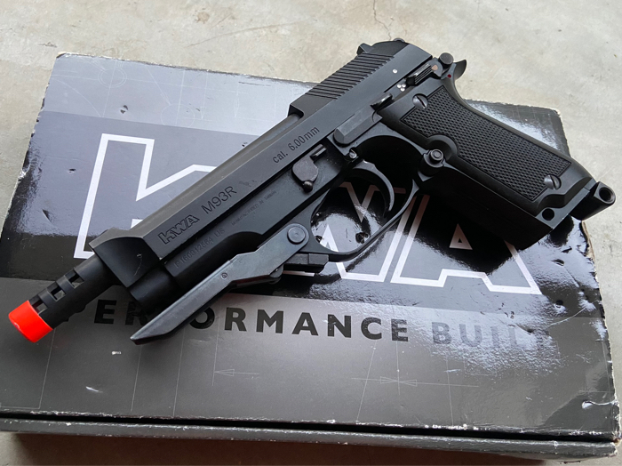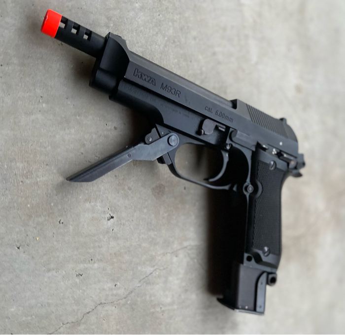 The M93RII is a weapon that is known for its unique capabilities that other full sized handguns cannot provide. The KWA M93RII features a select fire switch that allows the weapon to fire in three round burst or semi-automatic modes giving the weapon the flexibility to adapt to many combat situations. An option for folding front grip provides the operator increased control while operating on full auto and three round burst modes. The full metal construction of the weapon increases rigidity and durability, while the updated NS2 system provides reliable outstanding performance. The KWA M93R II provides the shooter massive amounts of firepower while maintaining a pistol frame.