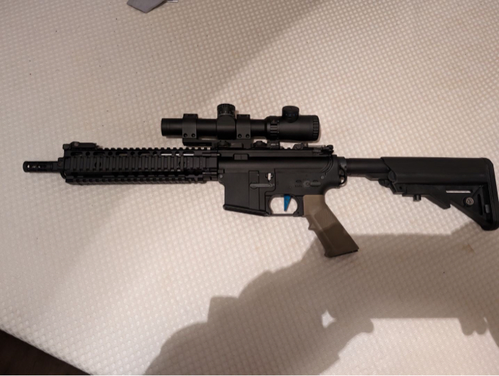Built aeg. Spectre trigger board. it shoots 28 rps on an 11.1. quick trigger response. Nothing wrong with it works perfect. Scope not included. Can send more pics or vids. PayPal or Venmo and will ship NO TRADES