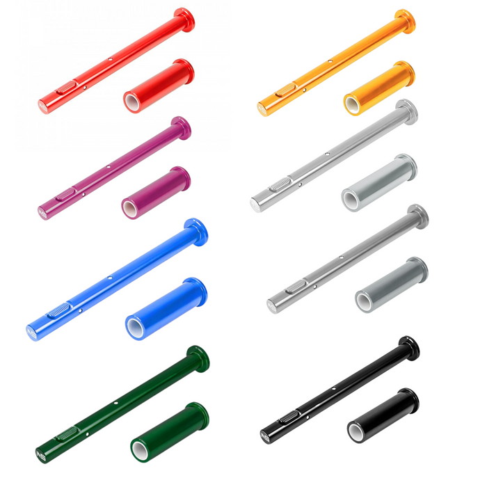 The CNC Aluminum Recoil Spring Plug / Guide Rod is machined with precise CNC tolerances from Aluminum and Delrin for improvements in stability, durability and overall performance.
