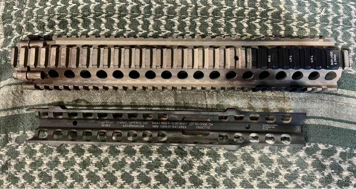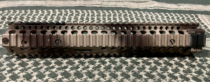 Selling a used and painted DD MK12 rail, 4/6 mounting screws and barrel nut included. This is a Madbull licensed rail, not a aliexpress knockoff.