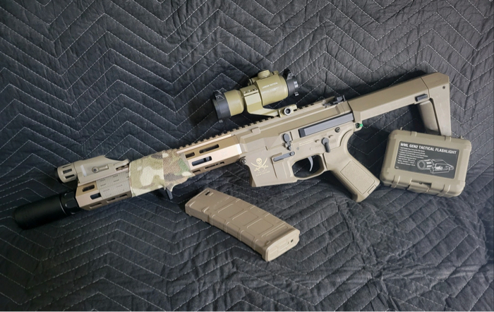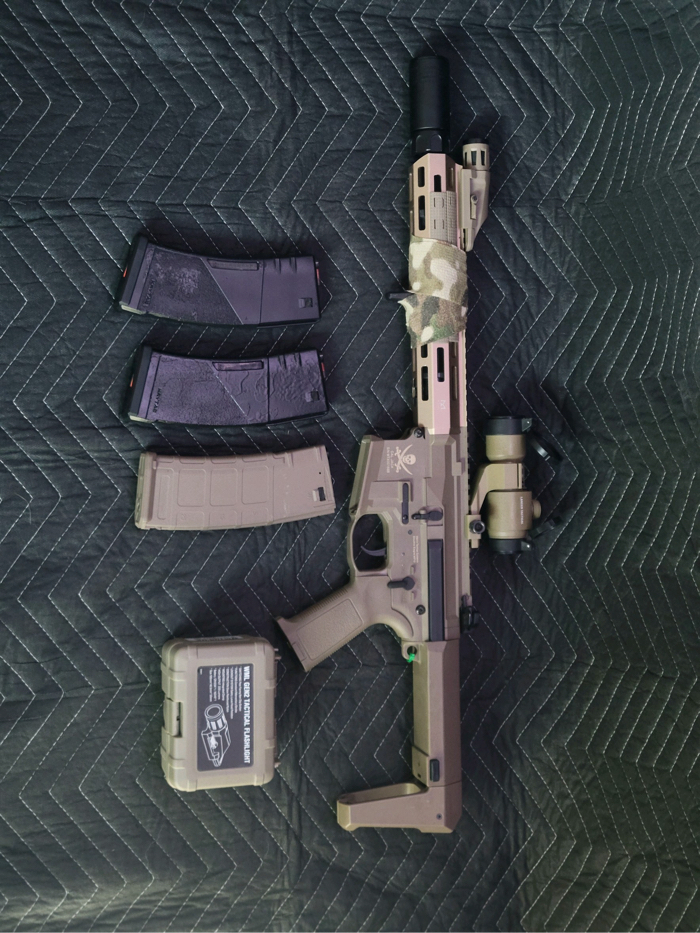 This is an awesome gun for beginners and intermediates. Used a few times and it competed with 350+ plus AEG’s. Comes with everything that is shown. Reach out if you have any questions 🤙